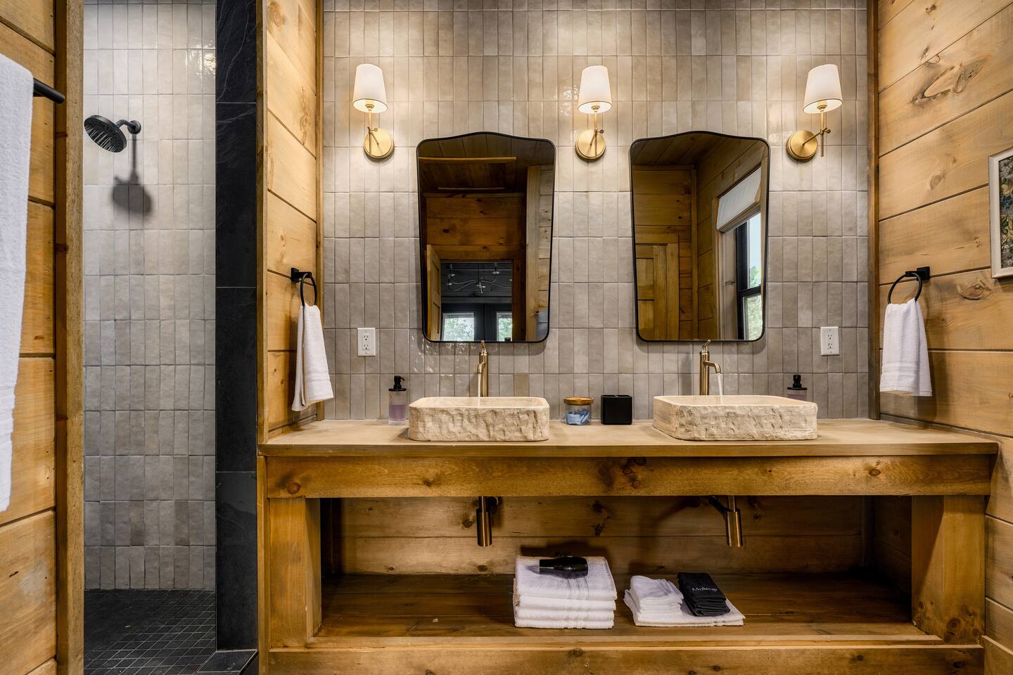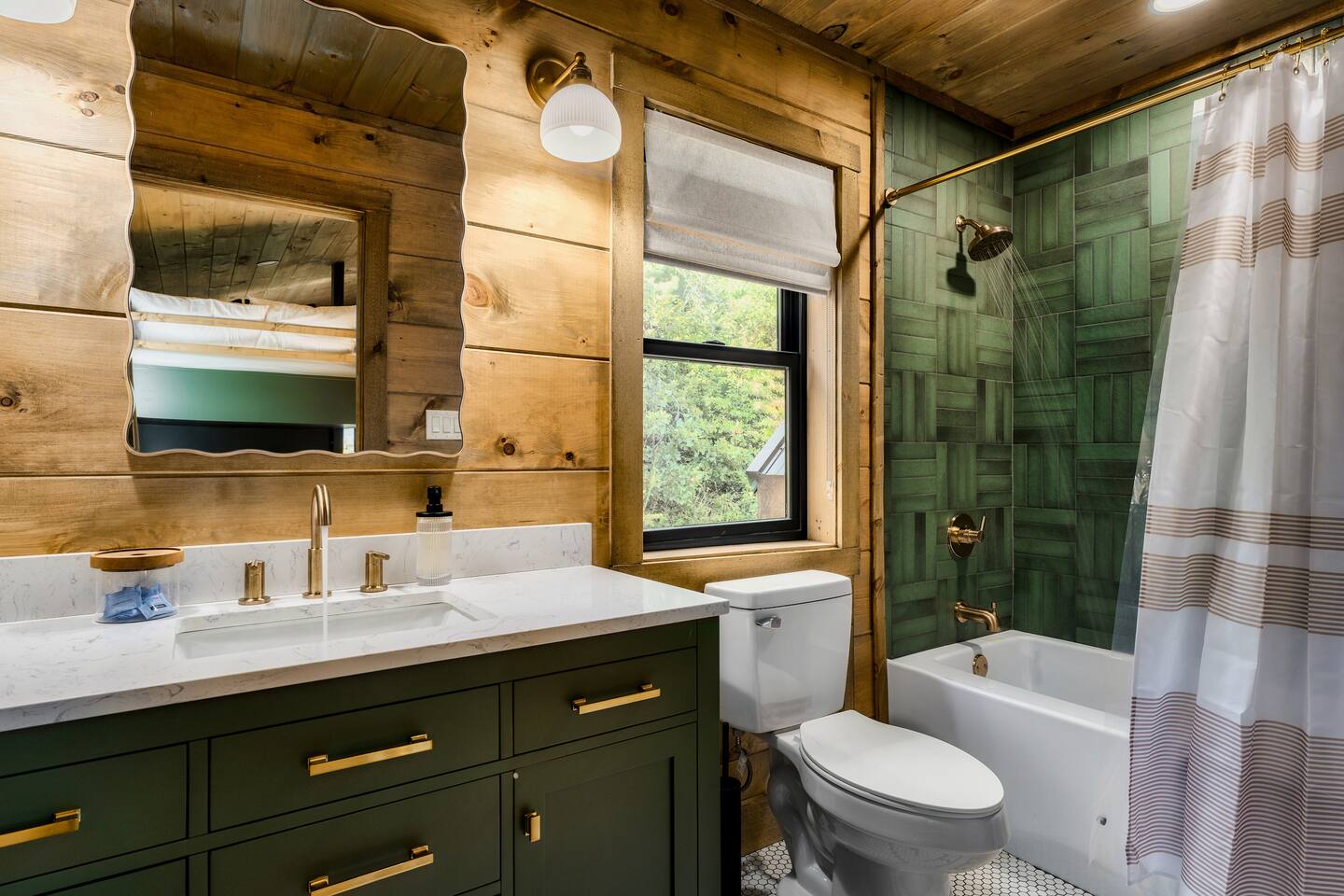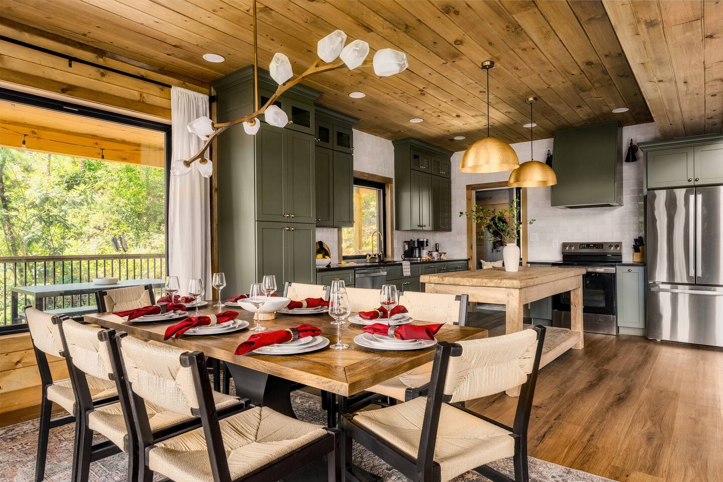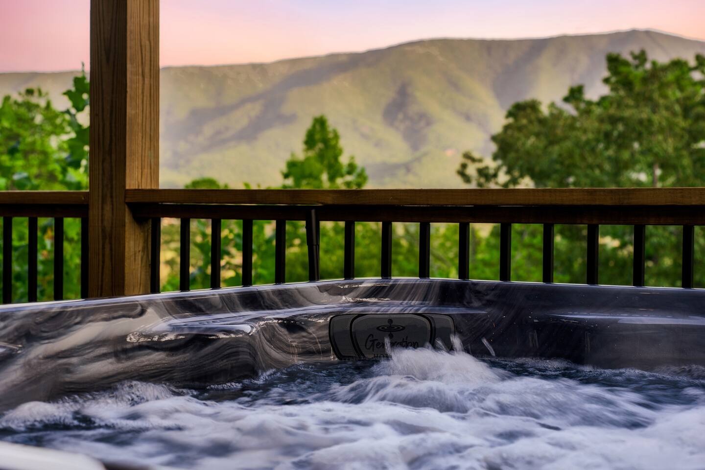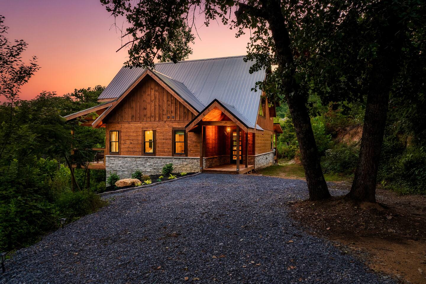 Modern cabin with hot tub views, game loft, and stylish interiors near Pigeon Forge & Gatlinburg.